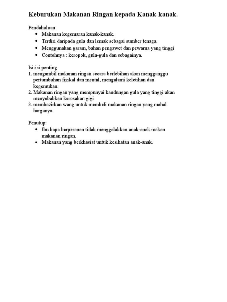 Makanan-makanan ini sangat mudah didapati enak rasanya dan berpatutan harganya. Cara Nak Cari Bra Yang Sesuai. Berikut adalah contoh isi dan karangan berkaitan dengan kesan-kesan buruk pengambilan makanan segera terhadap kesihatan untuk rujukan pelajar.